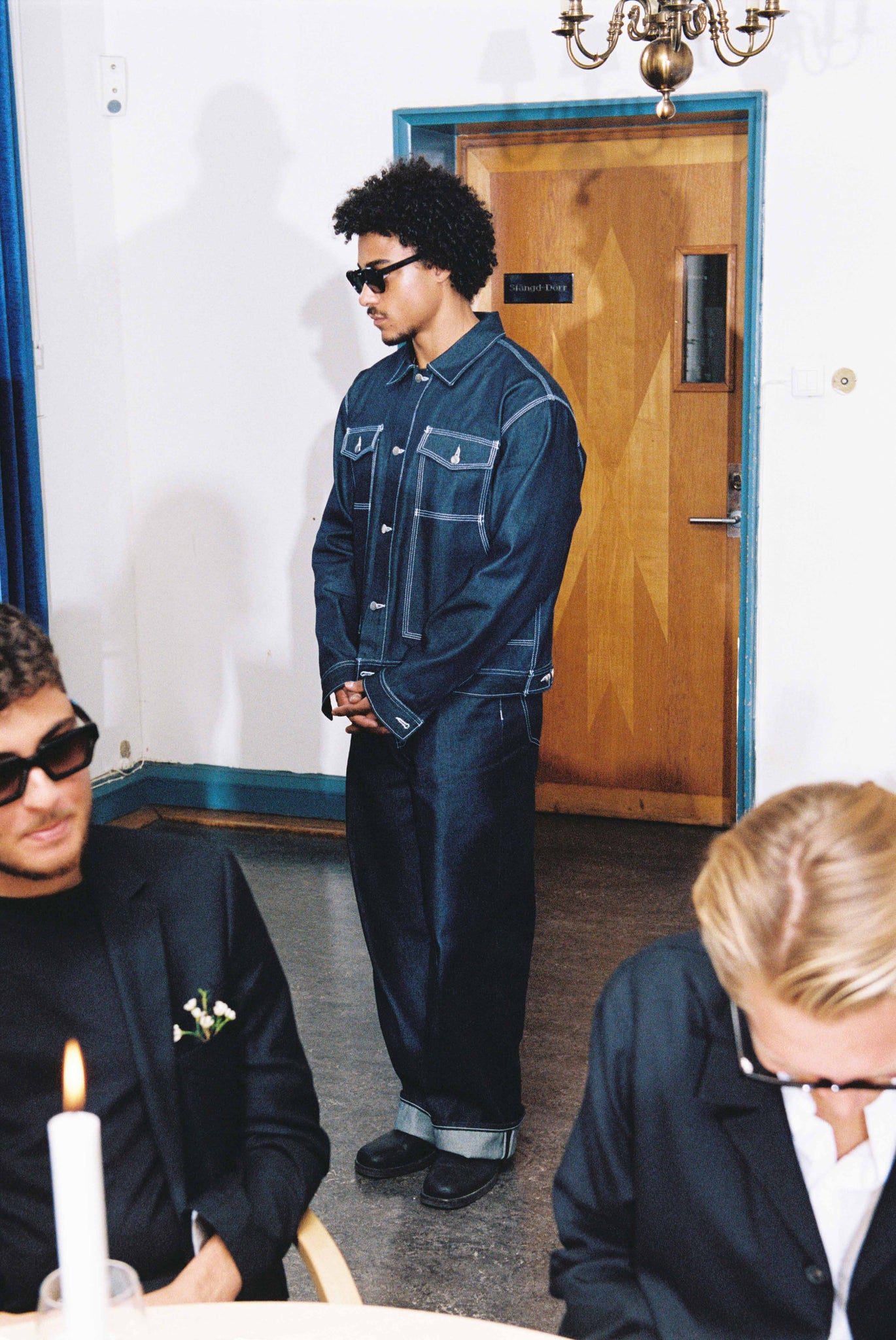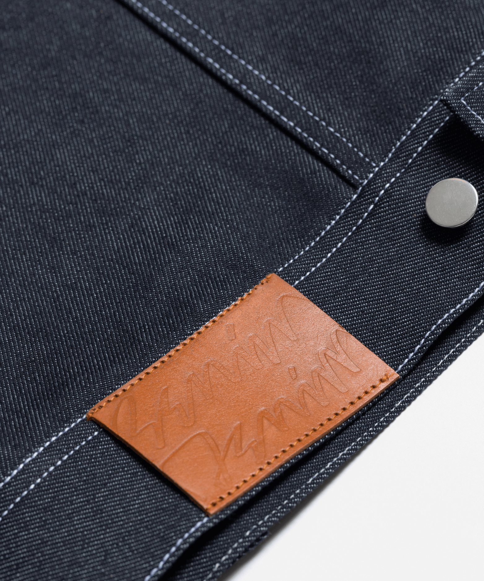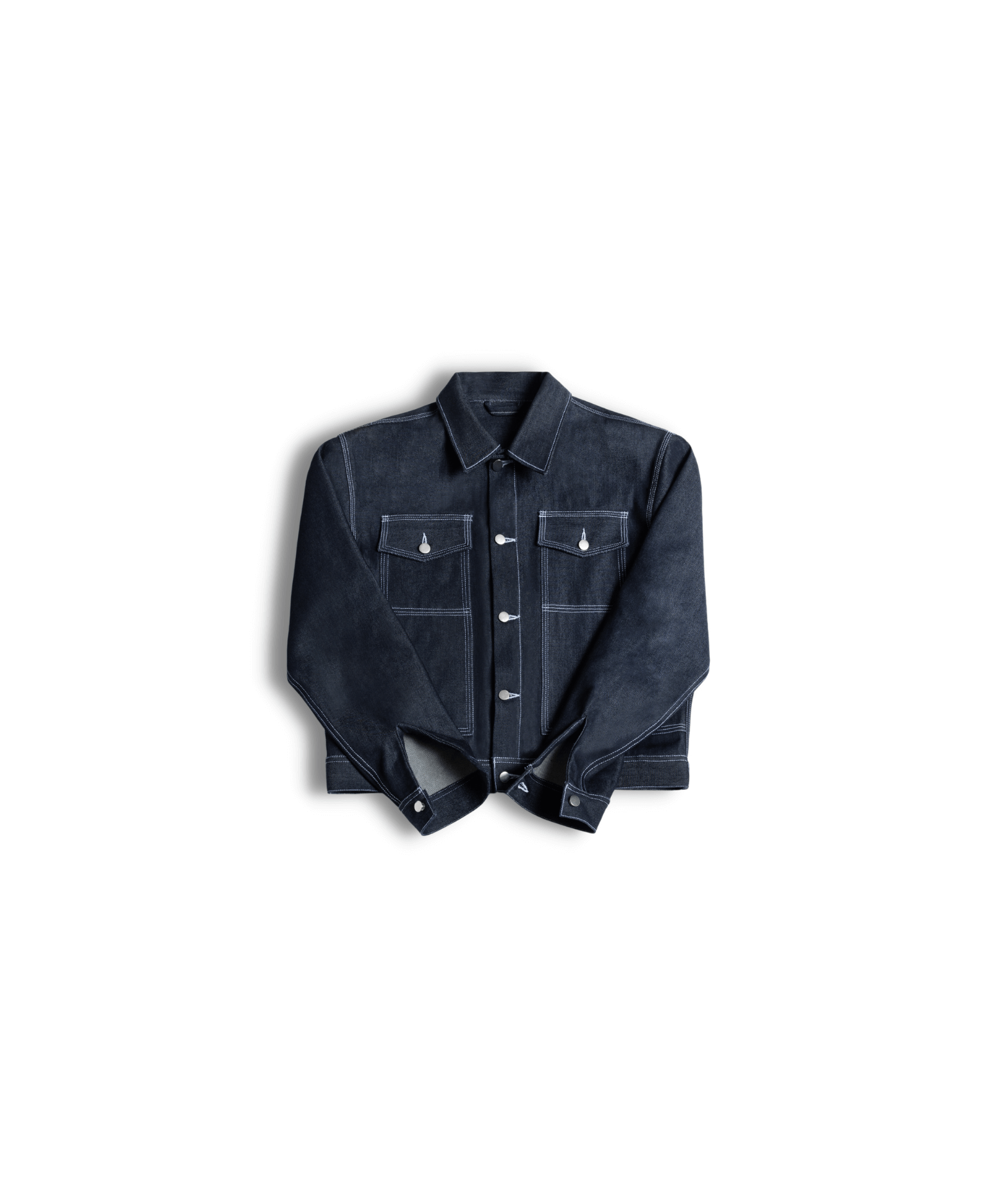 A raw denim jacket with multiple front pockets and a bottom band with adjustable detailing. Indigo color. All Benim Denim products are made with Circulose® recycled from post-consumer denim. Made in Malmö, Sweden.