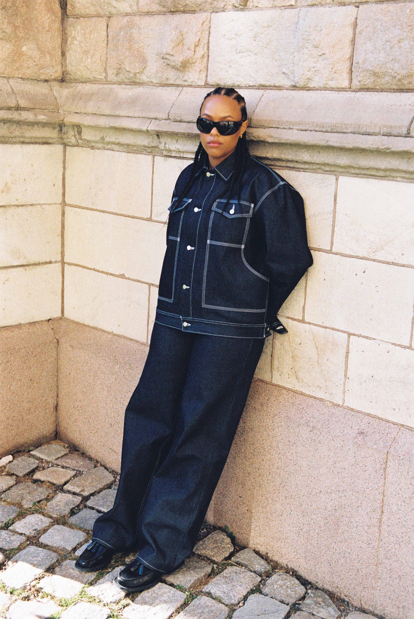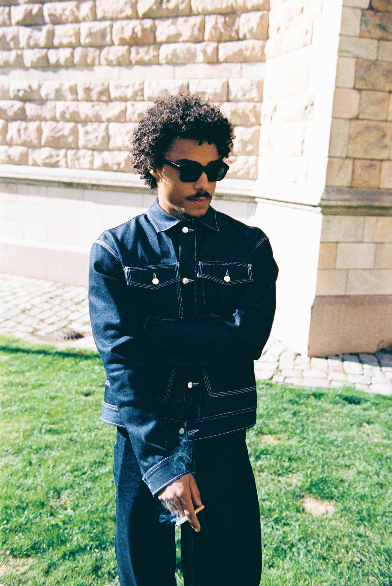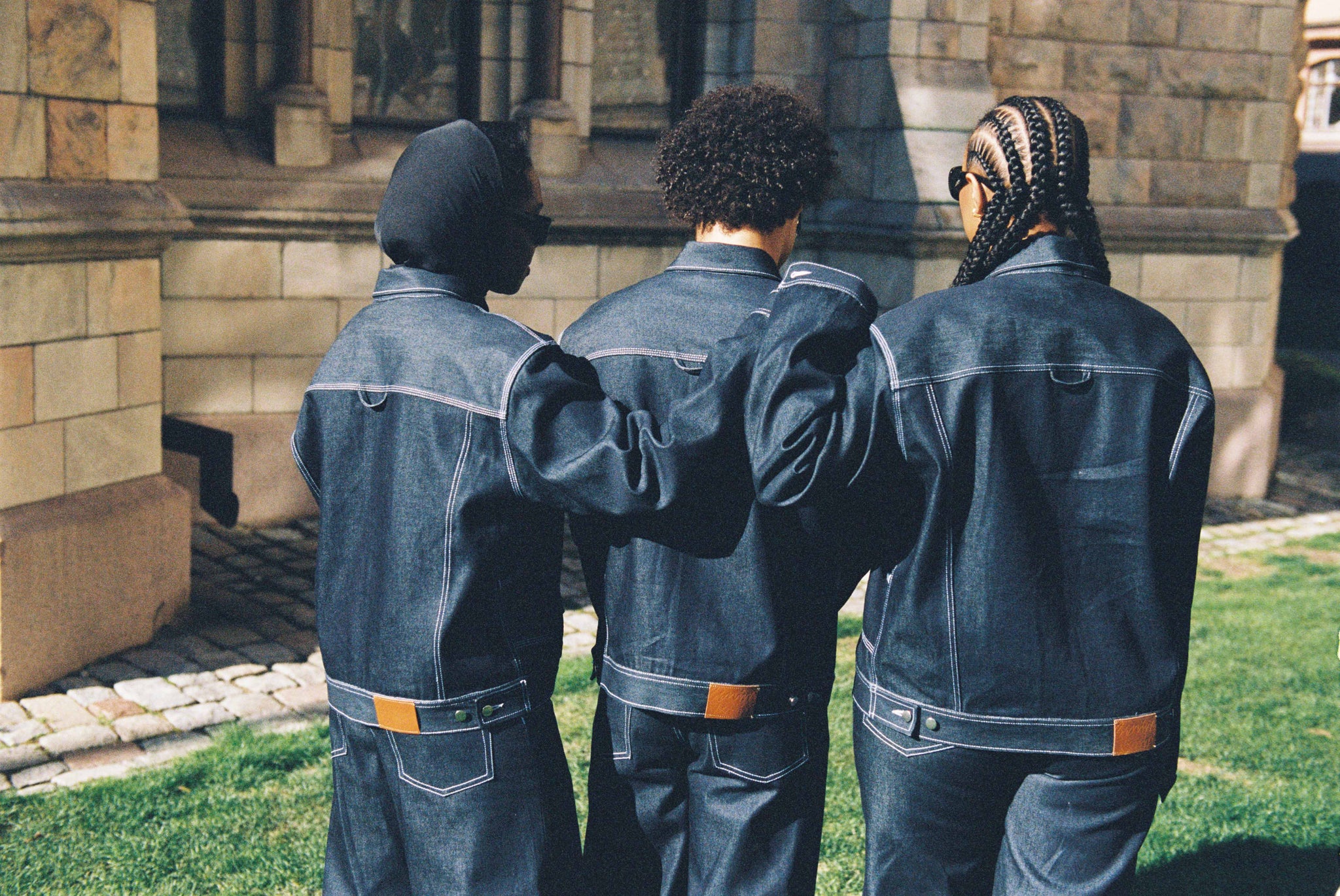 A raw denim jacket with multiple front pockets and a bottom band with adjustable detailing. Indigo color. All Benim Denim products are made with Circulose® recycled from post-consumer denim. Made in Malmö, Sweden.